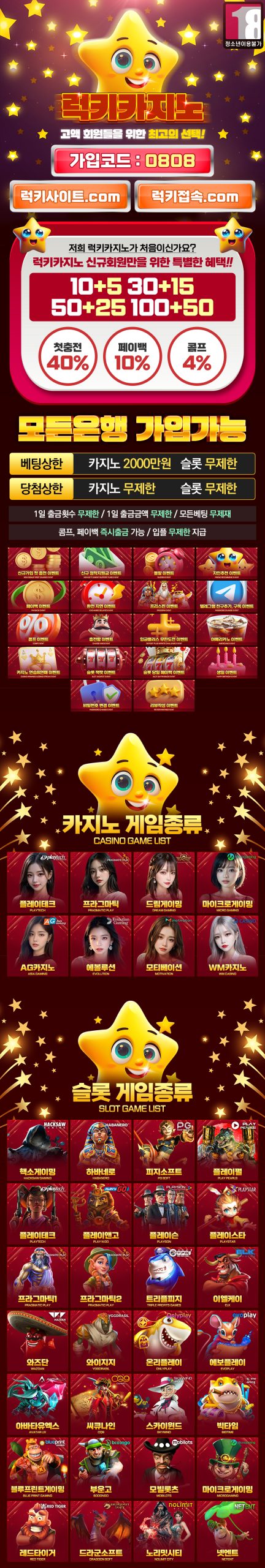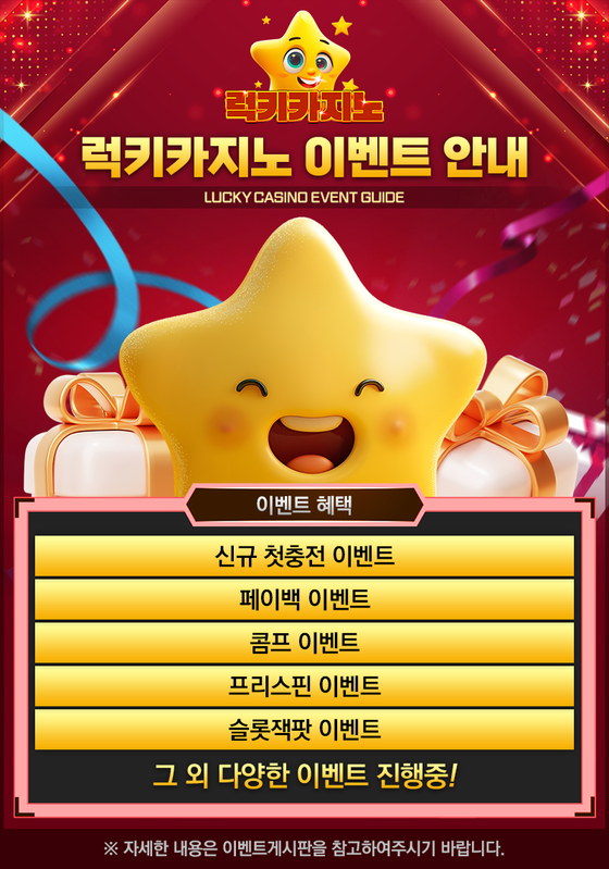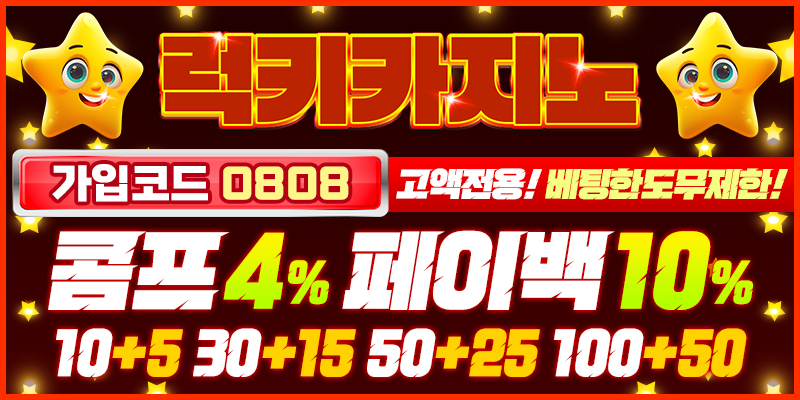 특히 럭키카지노는 국내 검증 기준을 충족한 프리미엄 플랫폼으로, 안정성과 운영 투명성을 모두 인정받고 있으며, 공식 파트너로서 그 가치를 함께 증명하고 있습니다.