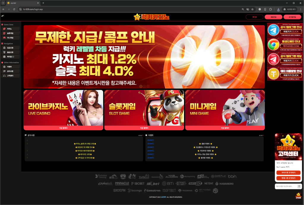 럭키카지노는 국내 최고 수준의 검증 기관으로 평가받는 비타민의 엄격한 심사를 통과한 메이저 플랫폼으로, 안정성과 신뢰도를 기반으로 안전놀이터 기준을 선도하는 대표 사이트로 자리잡고 있습니다.